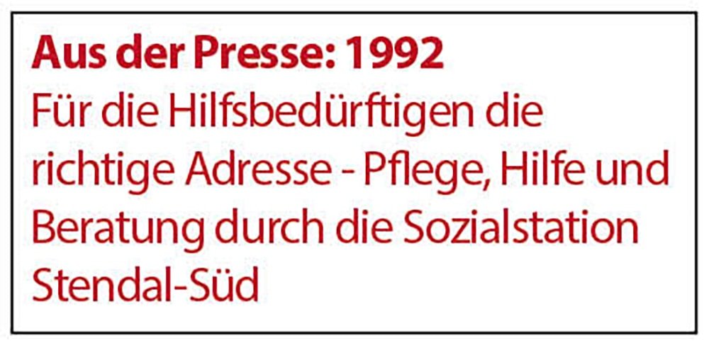 Aus der Presse 1992 Veröffentlicht 6. März 2016 at 1000 × 491 in Sozialstation Süd Häusliche Kranken- und Altenpflege GmbH: im März 2016 ← Vorheriger Nächste →